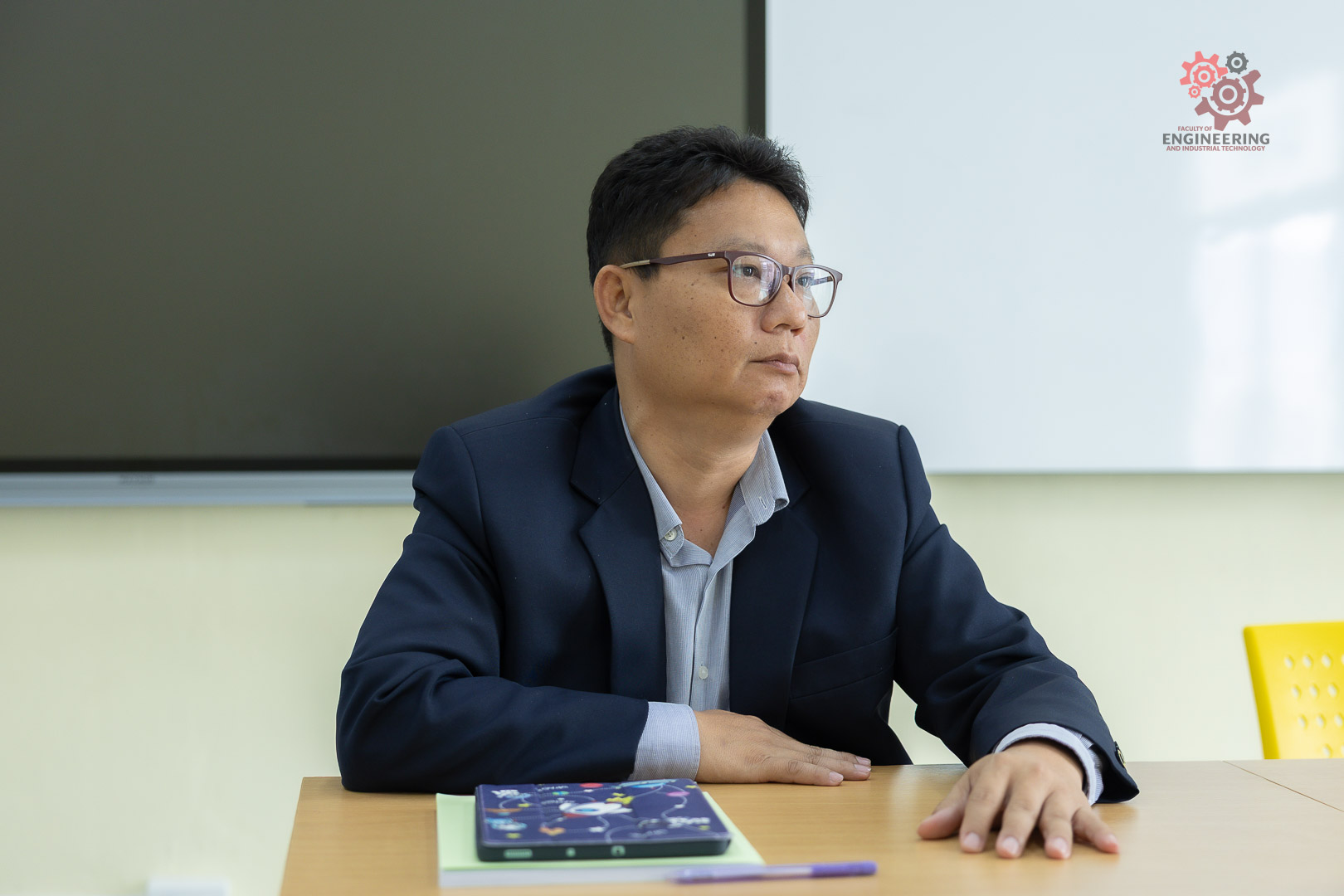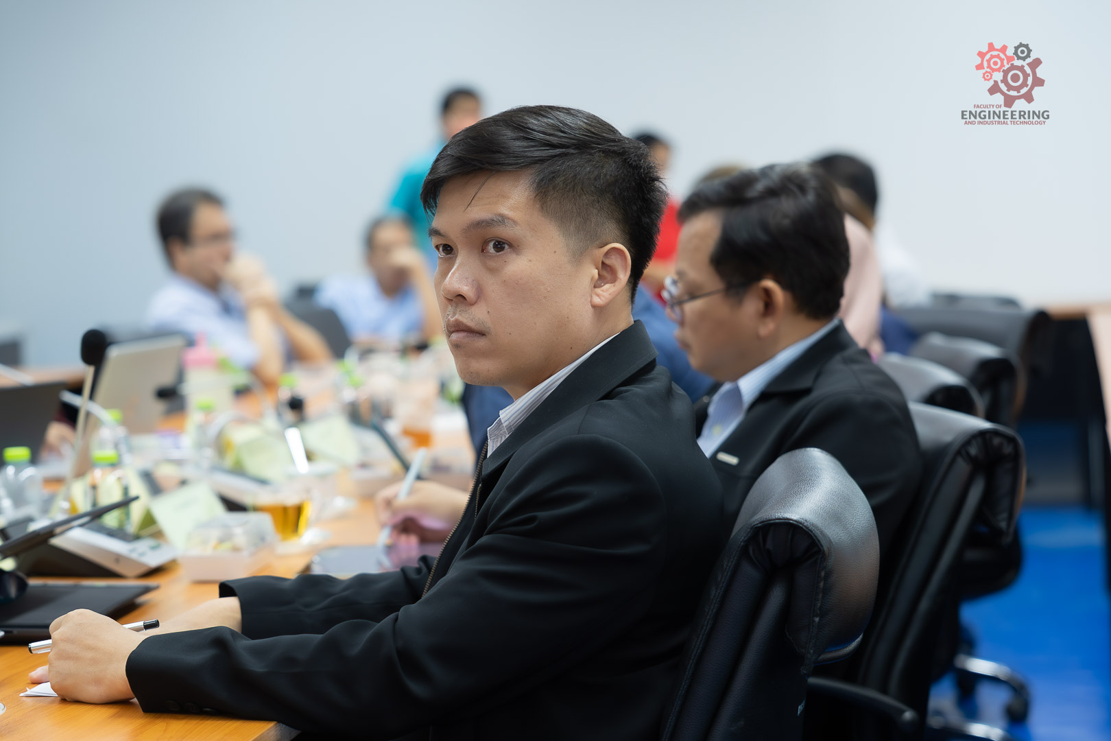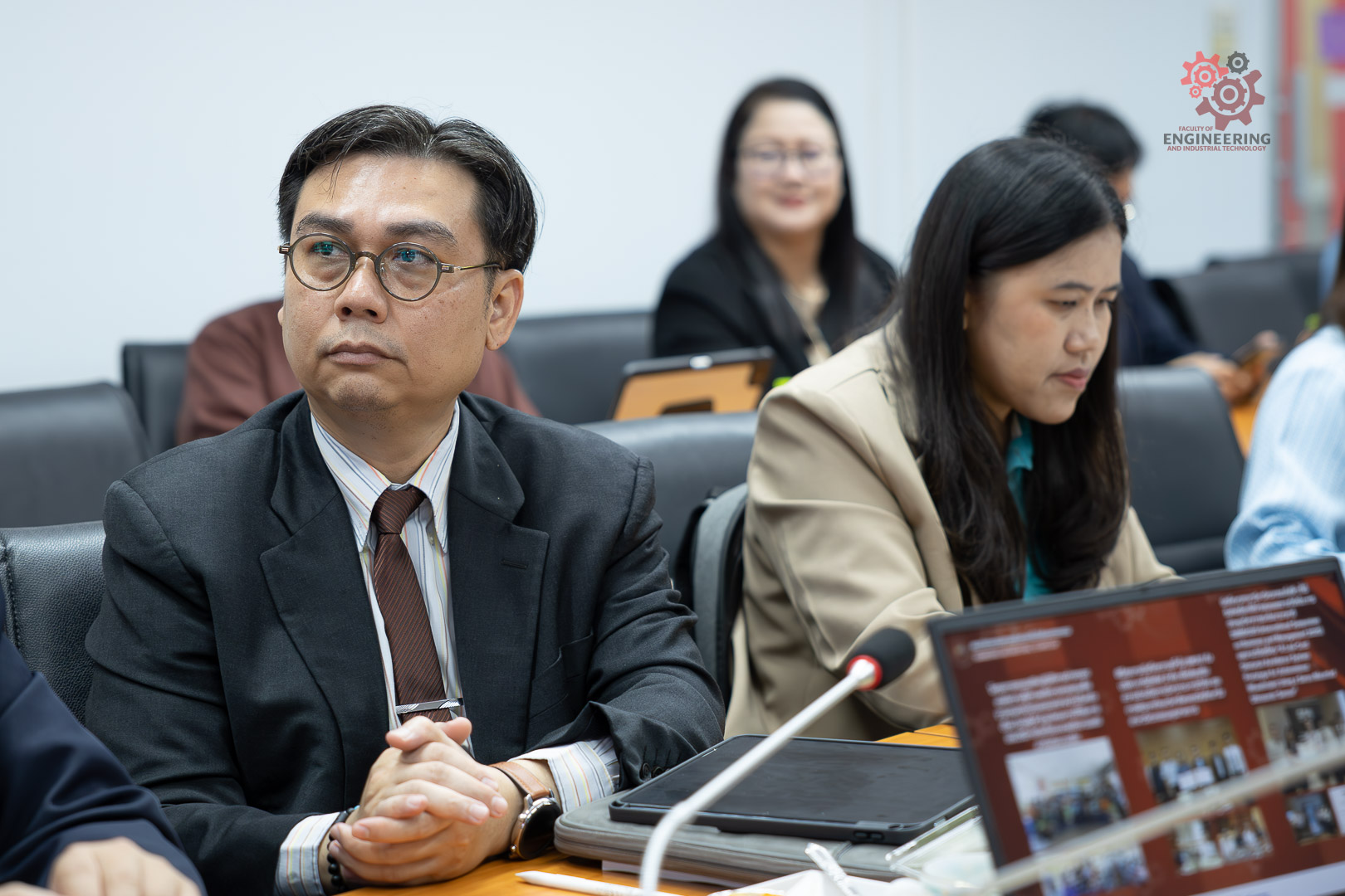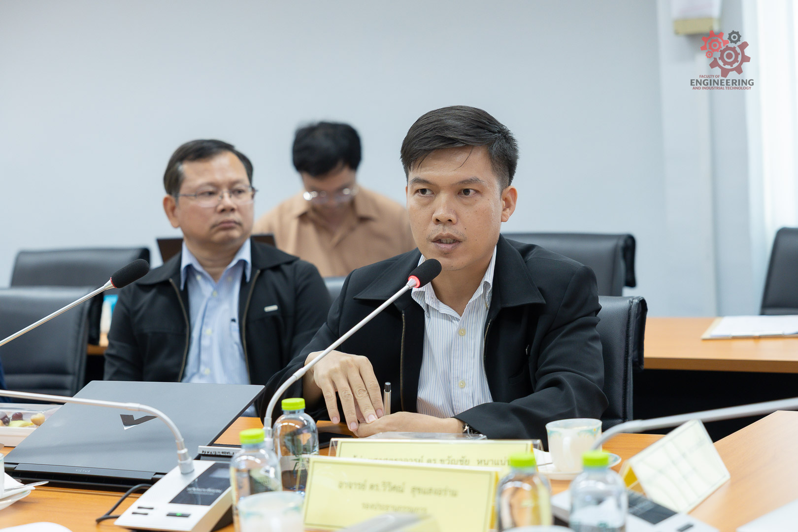 ในการนี้ ผู้ช่วยศาสตราจารย์ ดร.ขวัญชัย หนาแน่น คณบดีคณะวิศวกรรมศาสตร์และเทคโนโลยีอุตสาหกรรม ได้กล่าวต้อนรับคณะกรรมการฯ และนำเสนอผลการดำเนินงานของคณะฯ ในประเด็นต่าง ๆ อาทิ การพัฒนาผู้เรียน การวิจัยและนวัตกรรม การบริการวิชาการ การทำนุบำรุงศิลปวัฒนธรรม และการบริหารจัดการ โดยมีคณาจารย์และบุคลากรร่วมให้ข้อมูลอย่างพร้อมเพรียง