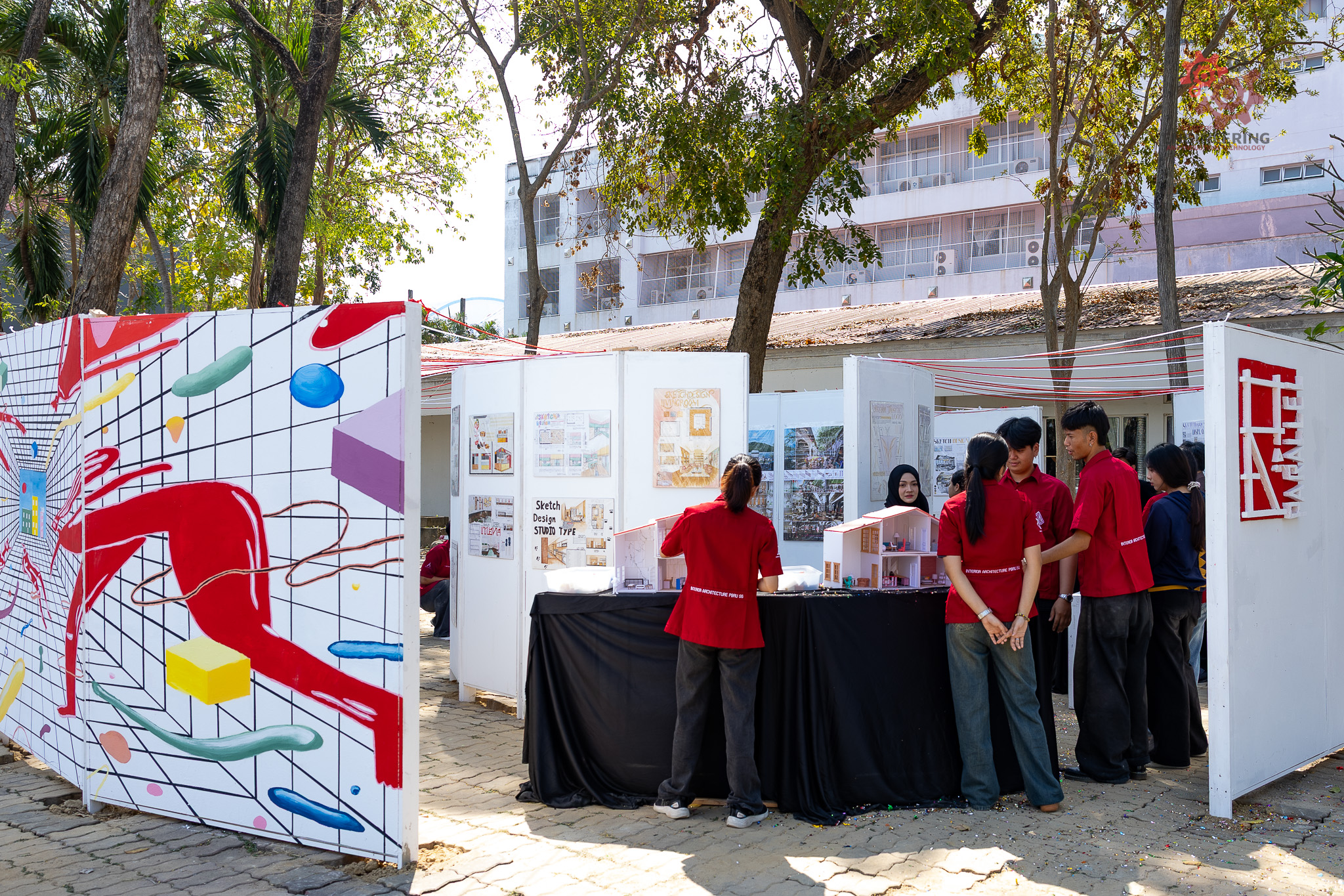 เมื่อวันที่ 23 กุมภาพันธ์ 2569 ที่ผ่านมา ณ ลานกิจกรรมข้างตึกสถาปัตยกรรมภายใน ได้มีการจัดพิธีเปิดนิทรรศการอย่างเป็นทางการ โดยได้รับเกียรติจาก รองศาสตราจารย์ ดร.ขวัญชัย หนาแน่น คณบดีคณะวิศวกรรมศาสตร์และเทคโนโลยีอุตสาหกรรม มหาวิทยาลัยราชภัฏเพชรบุรี เป็นประธานกล่าวเปิดงาน พร้อมด้วย อาจารย์ภัทรวรรณ เอมกมล ประธานสาขาวิชาสถาปัตยกรรมภายใน และคณาจารย์ในสาขาวิชา ที่มาร่วมแสดงความยินดีและให้กำลังใจนักศึกษาอย่างอบอุ่น
